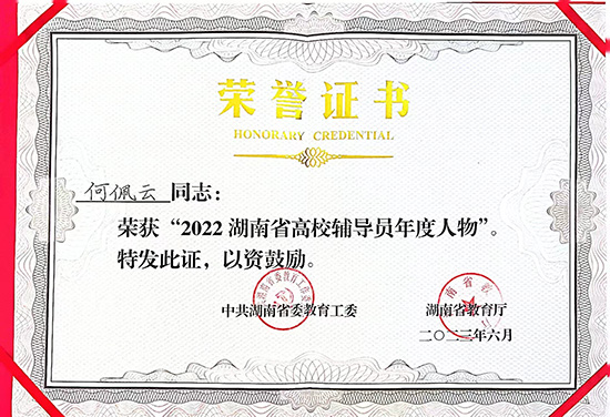 6月15日,2022年湖南省高校辅导员年度人物现场答辩会在邵阳学院举行。我校商学院辅导员何佩云荣获“2022年度湖南省高校辅导员年度人物”。