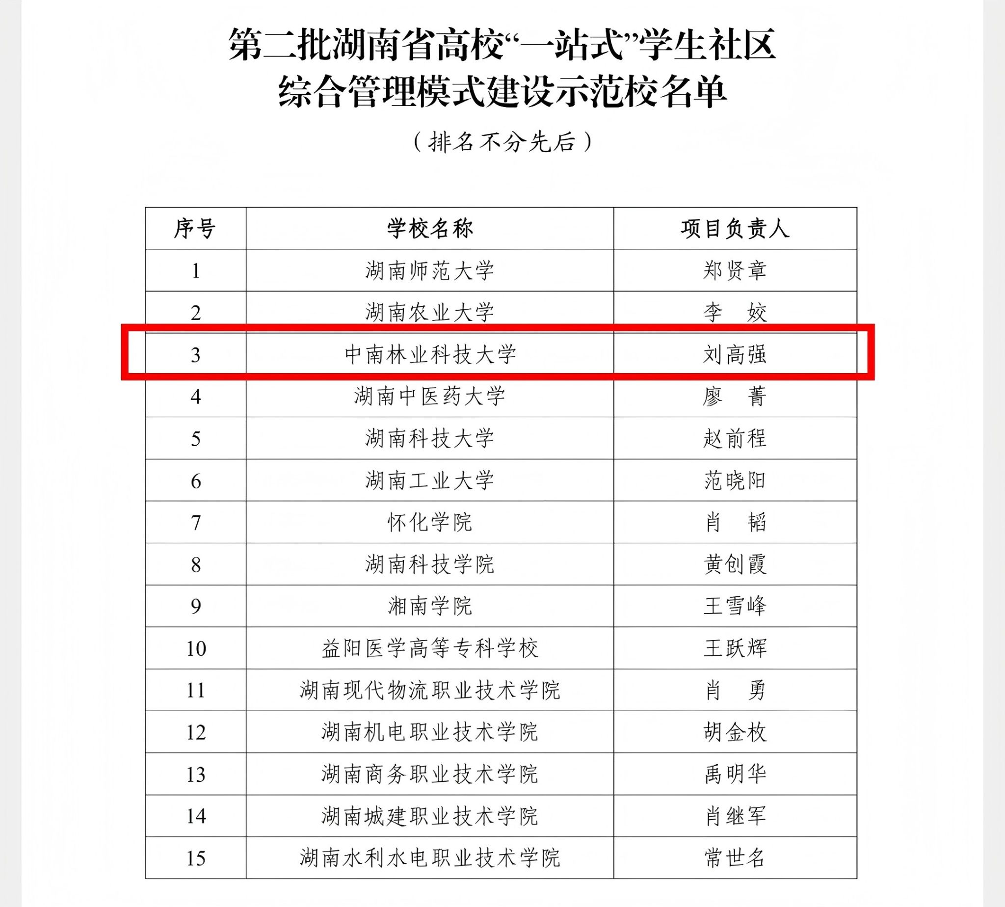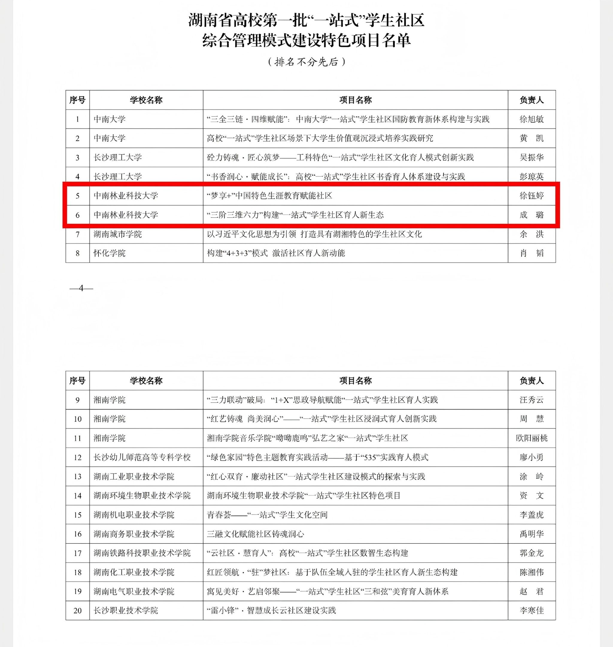 近日,湖南省教育厅公布第二批高校“一站式”学生社区综合管理模式建设示范校及首批特色项目名单,我校获评示范校,“‘梦享+’中国特色生涯教育赋能社区、‘三阶三维六力’构建‘一站式’学生社区育人新生态”两个项目入选首批特色项目。