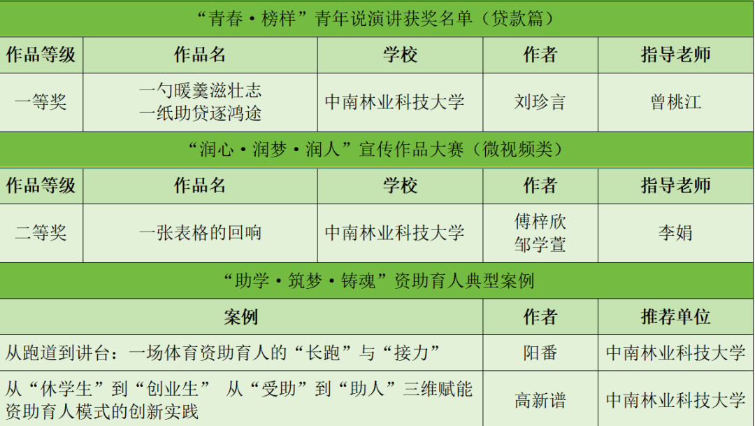 近日,湖南省教育厅正式公布2025年学生资助“百千万”系列宣传育人活动评审结果。我校凭借扎实的育人实践与创新的工作模式,在本次评选中表现优异,共荣获四项省级表彰,涵盖资助育人典型案例、宣传作品与主题演讲等多个类别,充分展现了我校资助工作的育人实效。