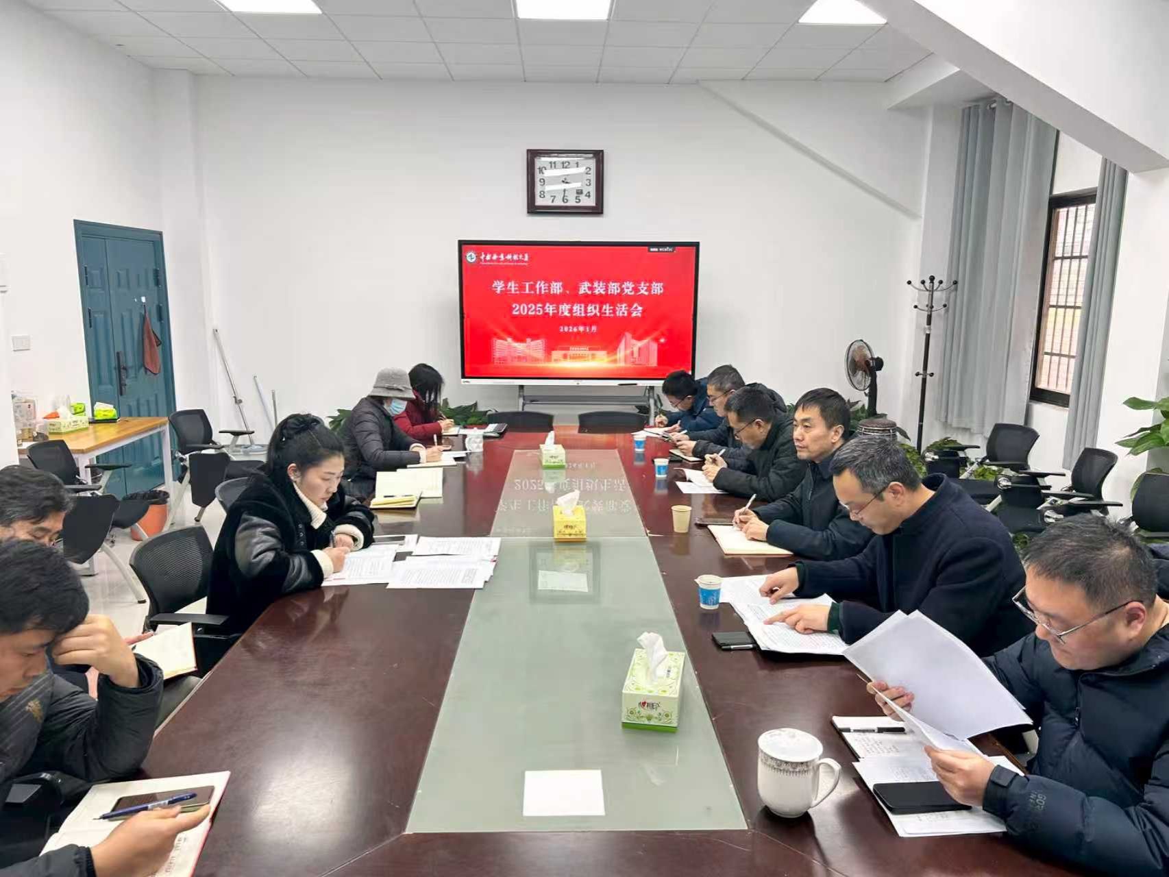 为深入学习贯彻习近平新时代中国特色社会主义思想,全面贯彻落实党的二十届四中全会精神,持续推进作风建设常态化长效化,学生工作部、武装部党支部于2026年1月27日下午在体育西看台323会议室组织召开2025年度组织生活会。党支部全体党员参加会议,学校副校长刘高强以普通党员身份参加会议。