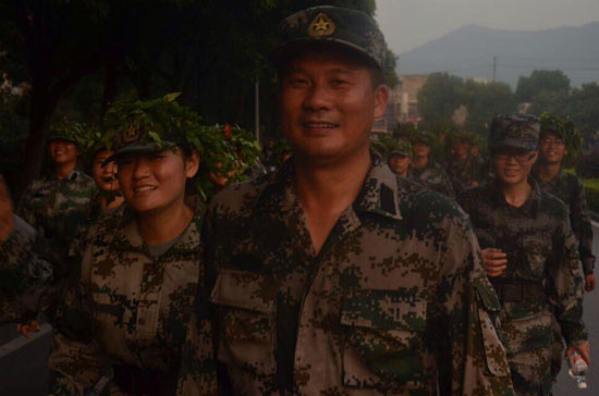 9:30,学生教官队伍整装返回。烈日当空,经过两个多小时的徒步疾行,他们相互鼓励、相互帮助,坚持、坚持、再坚持,终于在中午12:00全部顺利返回到那个留有太多血汗的训练场。部队行进过程中,高呼:"掉皮掉肉不掉队,流血流汗不流泪"。事后学员们纷纷表示:此次拉练不仅让他们锻炼了身体,磨练了意志,更重要的是增强了团队意识。