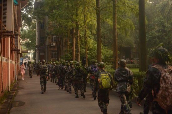 8月22日4点30分,一批身着迷彩、头戴伪装的学员趁着夜色悄悄在林科大西门集结。他们个个精神抖擞,整支部队似虎狼之师整装待发。他们是2014级新生教官队伍,正将进行拉练活动。